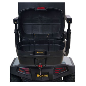 Golden Technologies understands that long rides require more than just power — they demand comfort. The Eagle GR596 features a plush high-back captain’s seat, padded adjustable armrests, and an infinite-position tiller, so you can customize your posture for maximum support. The ergonomic design makes it easy for both users and caregivers to operate the scooter comfortably and confidently.