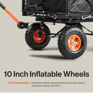 Fitted with large 10-inch pneumatic tires, the SuperHandy Dump Cart glides smoothly over uneven terrain. Gravel, dirt, or grass—no problem. These tires ensure stability and reduce strain when pulling or towing heavy loads.