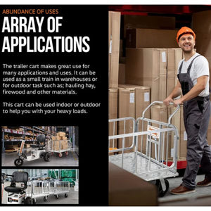 One of the standout features of this heavy-duty utility truck is its tugger compatibility. You can connect the cart directly to a powered tugger or chain multiple carts together to form a "tugger train" — perfect for moving multiple loads efficiently.